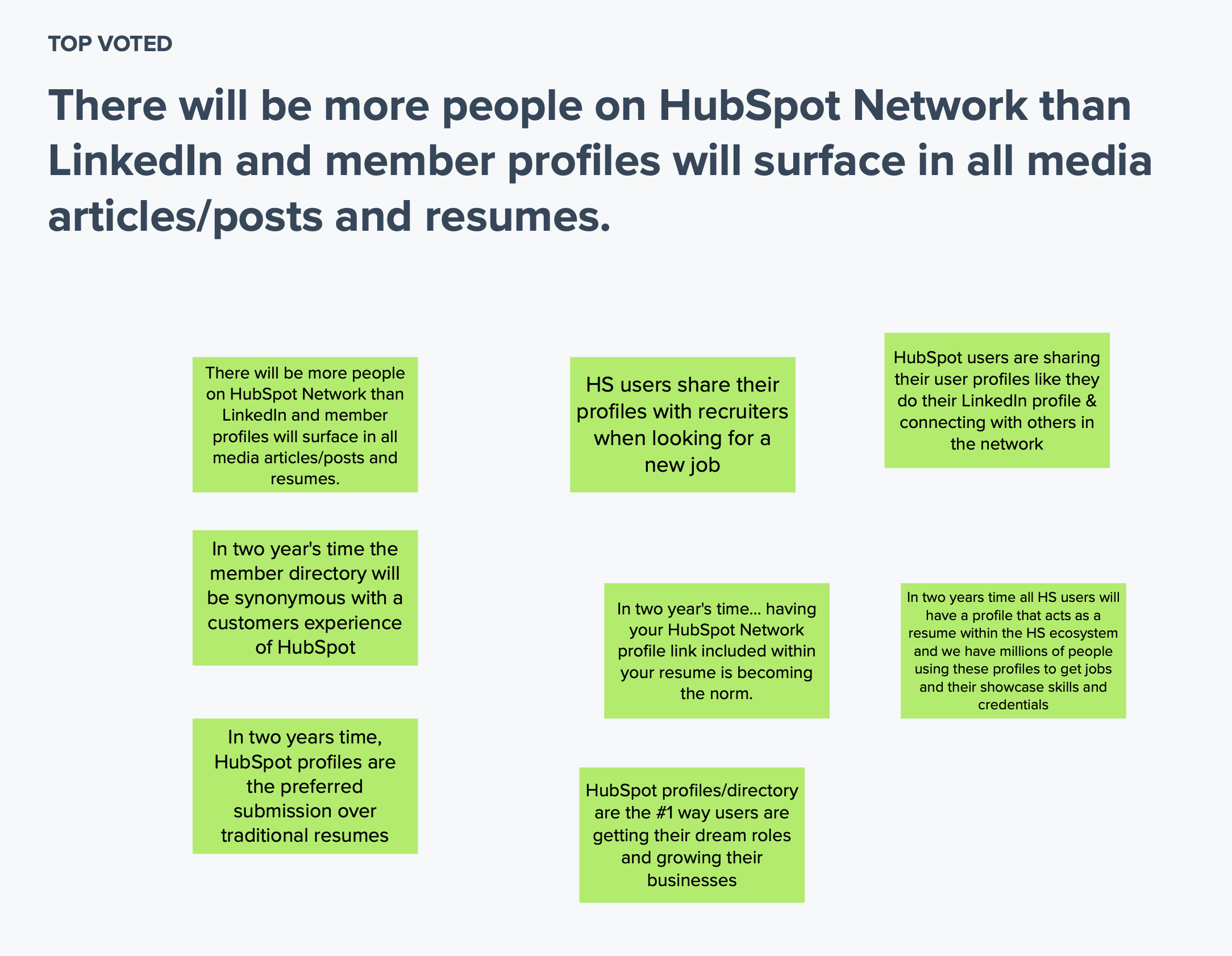 Top voted: "There will be more people on HubSpot Network than LinkedIn and member profiles will surface in all media articles/posts and resumes."