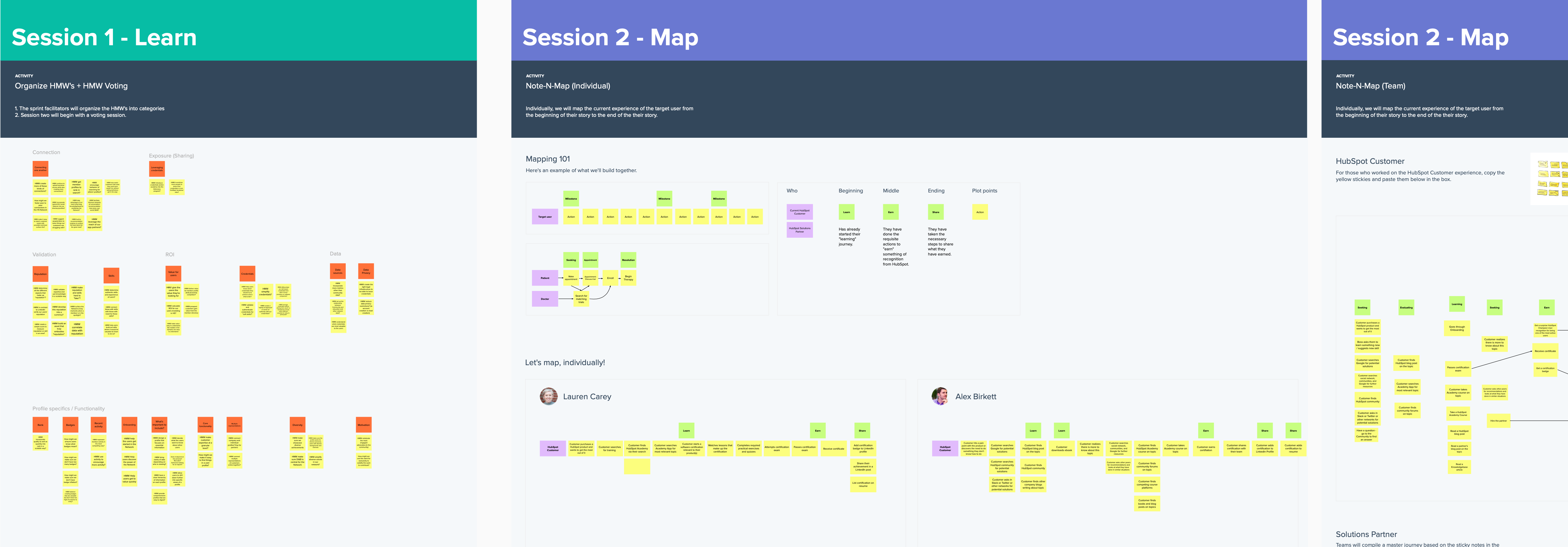 I planned three separate sessions for this design sprint. Essentially removing the prototyping and testing portion that normally happens and focusing more on the Learning, Noting, and Collaboration exercises.