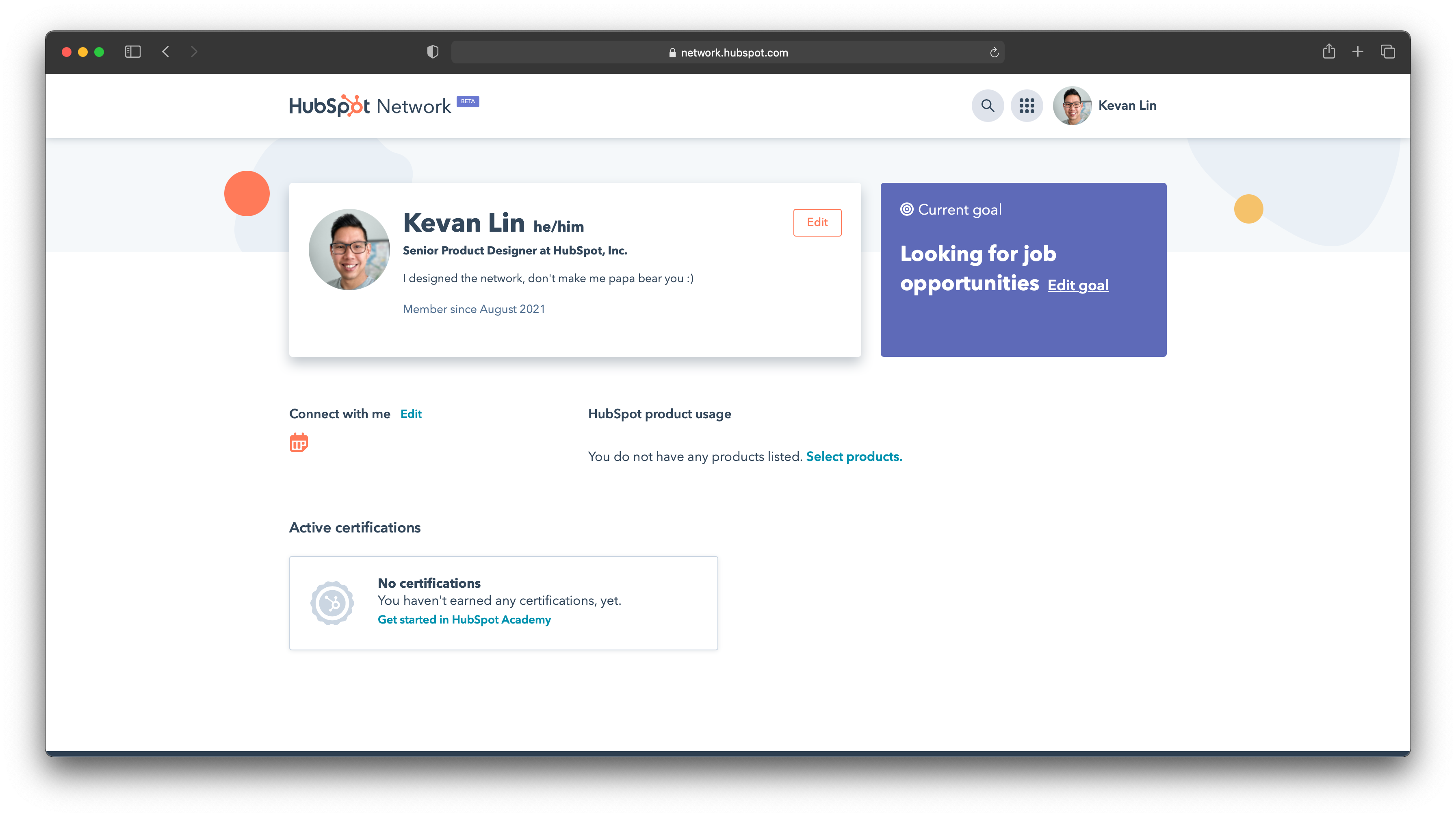 Due to some organizational changes, the Network project headed towards the MVP conversation and was stripped of a lot of potential features that could have been explored futher. Namely, connecting of people and doing so in a novel and clever way, especially in the effort of bolstering the HubSpot Partner ecosystem.