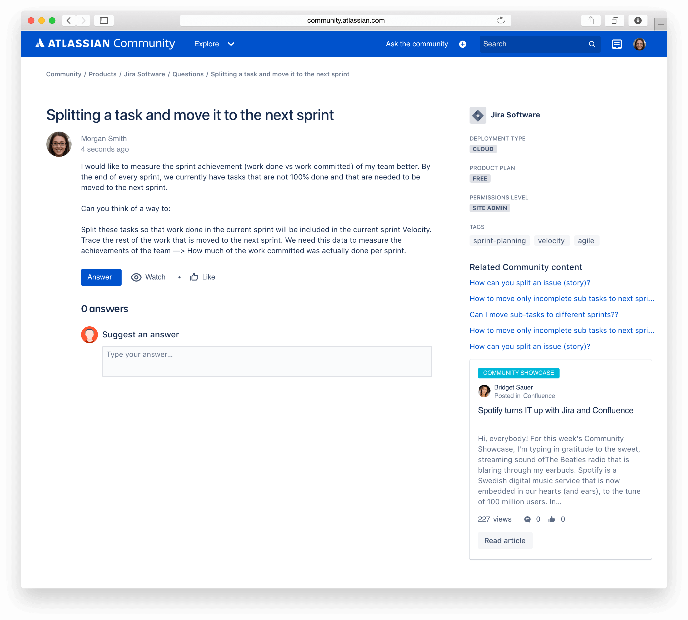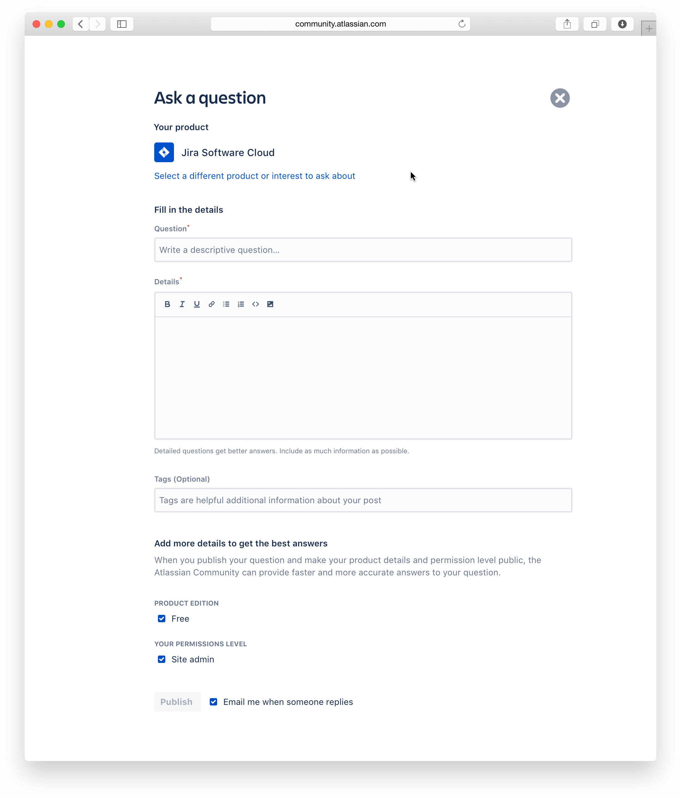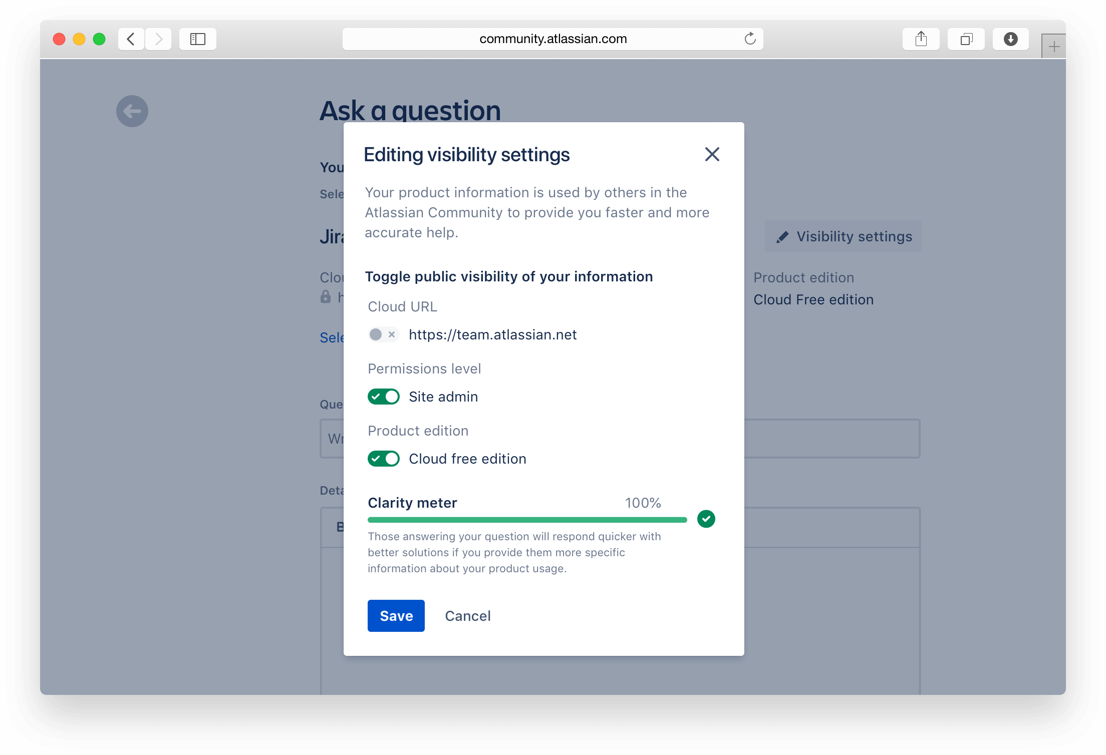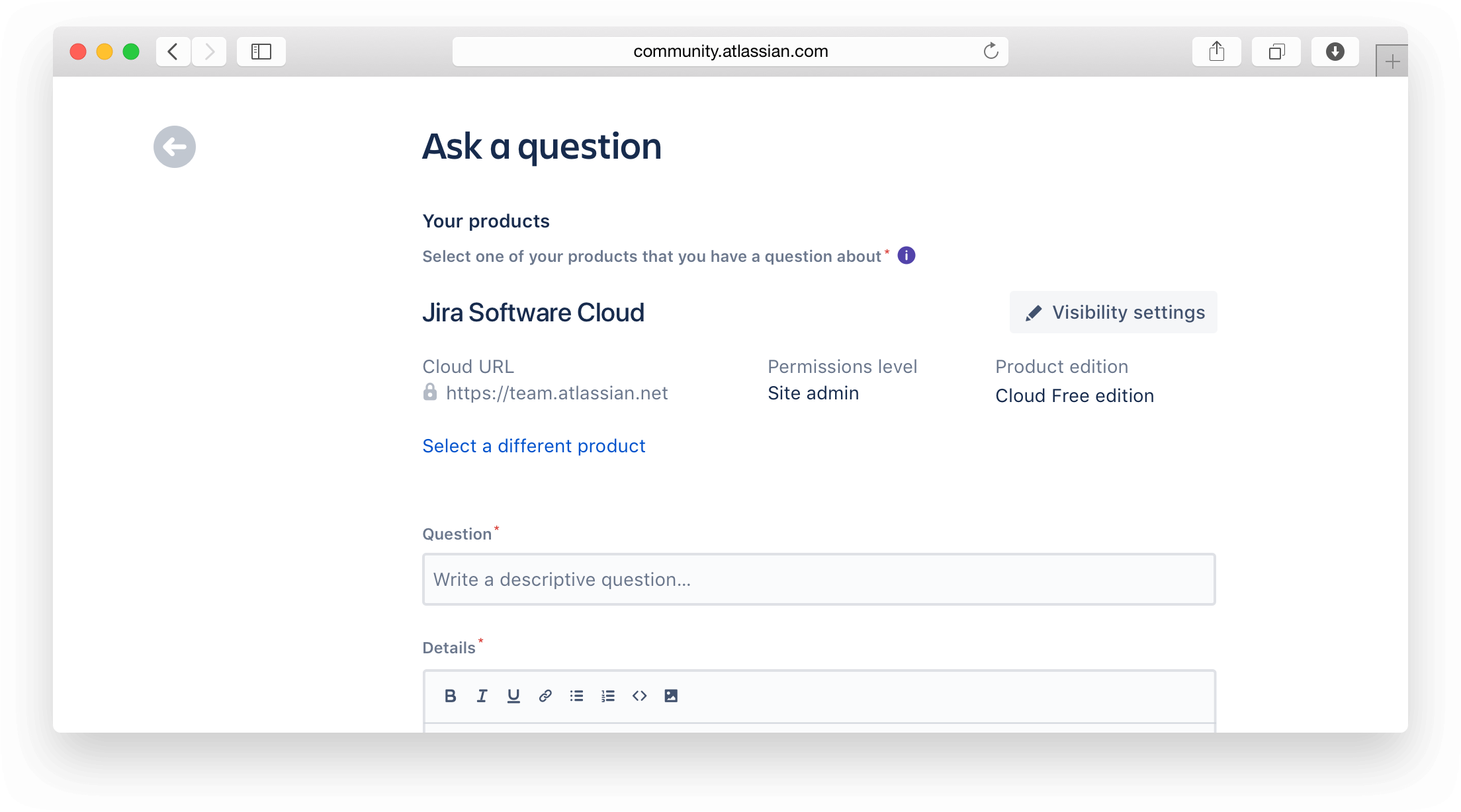 When posing a question to the Atlassian Community, the articulation of the details surrounding the product in question can make or break whether or not the question gets answered. Key data pieces like cloud instance or on-premise installation? If cloud instance, which product edition is it? Free or Standard? Are you experiencing the issue as an admininstrator or as an end-user?