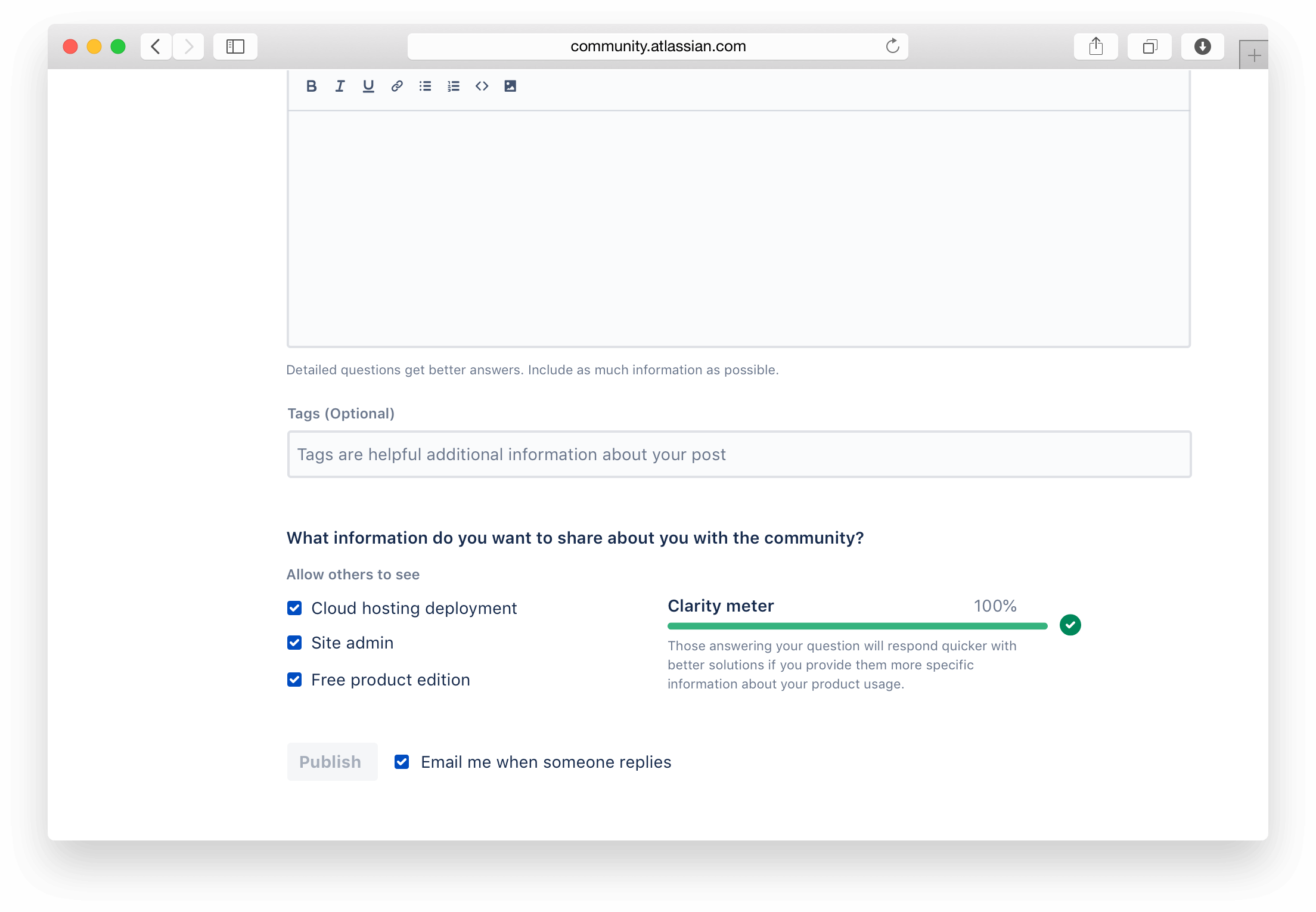 As mentioned in the background section, the immediate information to answer a question was not available and required time and effort by the original author. With roughly 87% of all questions being answerd by someone other than an Atlassian, it is imperative that non-Atlassians get the most detailed information around their fellow community member's context.